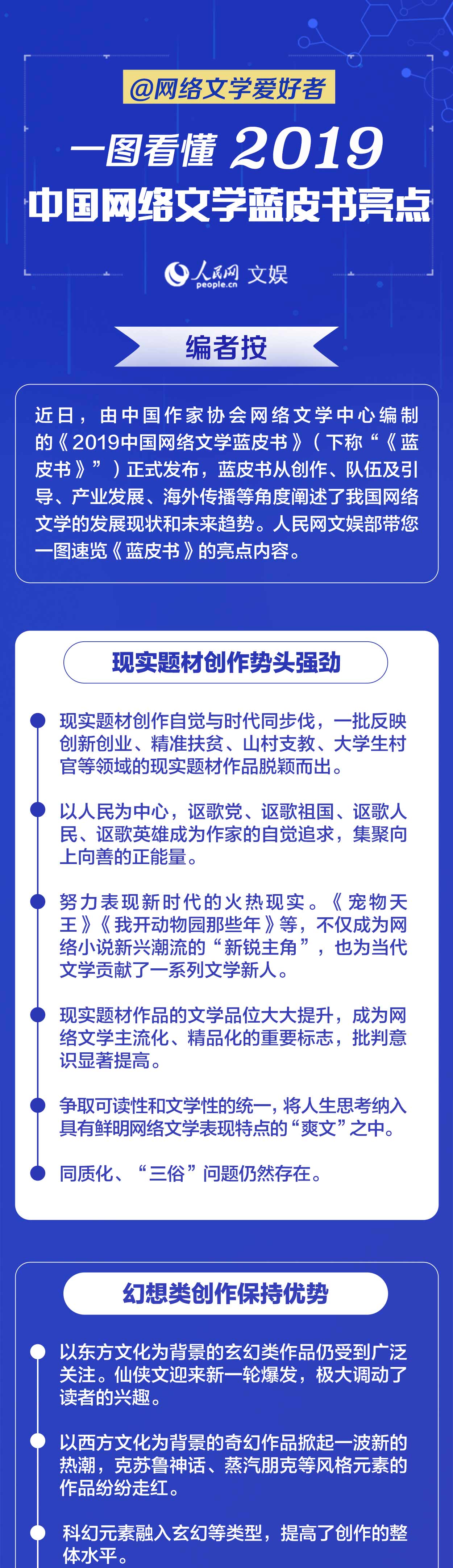 @網(wǎng)絡(luò)文學(xué)愛好者 一圖看懂2019中國網(wǎng)絡(luò)文學(xué)藍(lán)皮書亮點(diǎn)