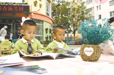 定西安定區(qū)友誼幼兒園“小書架”。