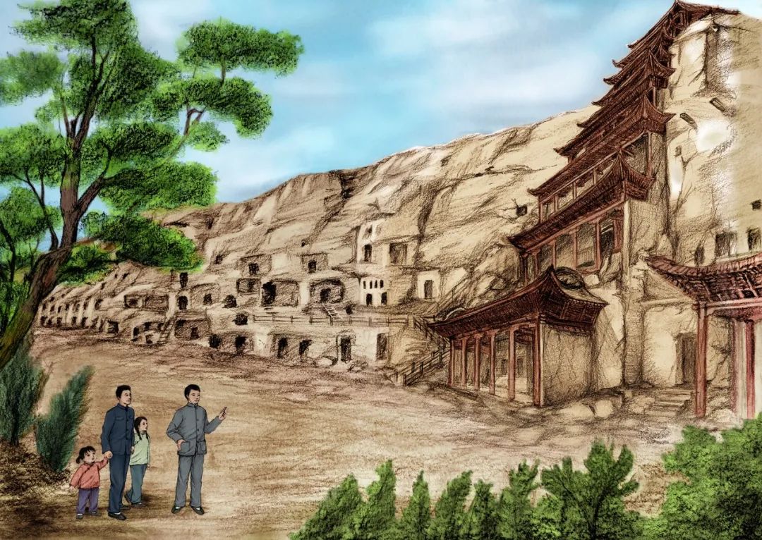 《敦煌小畫師》的故事,以民國時(shí)候國立敦煌研究所初創(chuàng)時(shí)期為背景,以一個(gè)小女孩欣潔的眼光,摹刻了一群以敦煌為文化藝術(shù)圣地而奮斗而獻(xiàn)身的藝術(shù)家和學(xué)者群體,這個(gè)群體以欣潔的父親為代表,他們舍棄溫暖濕潤的家鄉(xiāng),而遠(yuǎn)赴那個(gè)遙遠(yuǎn)荒涼的所在。因?yàn)槟抢镉卸鼗停驗(yàn)槟抢锉4嬷磺Ф嗄昵暗恼滟F文物和彩塑壁畫,還因?yàn)槟抢锛毙栌腥藖肀Wo(hù)、修復(fù)和弘揚(yáng)。他們來了,他們在這片戈壁之地安家扎根,在動(dòng)蕩的社會(huì)時(shí)局下開始了為家為國的擔(dān)當(dāng),也開始了人生理想和價(jià)值的實(shí)現(xiàn)。這一切,以一個(gè)孩子的眼光來看,幾乎就是交織著欣喜和失望、歡喜與憂愁,從茫然無知到誠摯熱愛的一段生動(dòng)故事?!抖鼗托‘嫀煛饭适虑楣?jié)的設(shè)定,有起伏有高潮,有親情之愛,有田野之趣,更有人與人之間和諧相助的人性之美,讀起來有聽一首鄉(xiāng)村音樂的韻律感。我覺得,一部優(yōu)秀的兒童文學(xué)作品,應(yīng)該就是這個(gè)樣子。