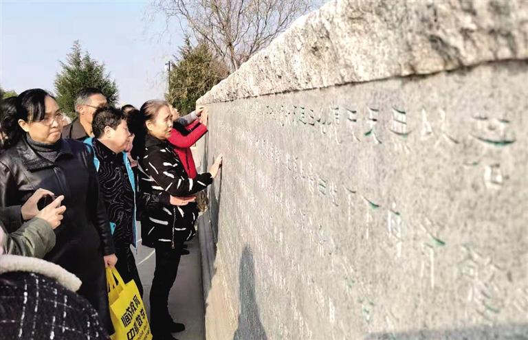 活動中,我市50多名視障讀者應邀在50多名志愿者的攙扶和引導下走進了蘭州國學館,開始了這場雙手“觸摸”國學之旅。講解員分兩組帶領著大家參觀了蘭州國學館,在他們溫暖、親切的嗓音里,國學館的風情樣貌逐漸在視障讀者的心中變得愈發(fā)清晰。一路上,工作人員還不斷鼓勵他們用身體去觸摸影雕、浮雕、線刻等,用指尖近距離感受著國學精粹的無比魅力。參觀完畢后,視障讀者們舉行了國學經(jīng)典交流與分享活動,在暢所欲言中表達了內(nèi)心的激動和喜悅。