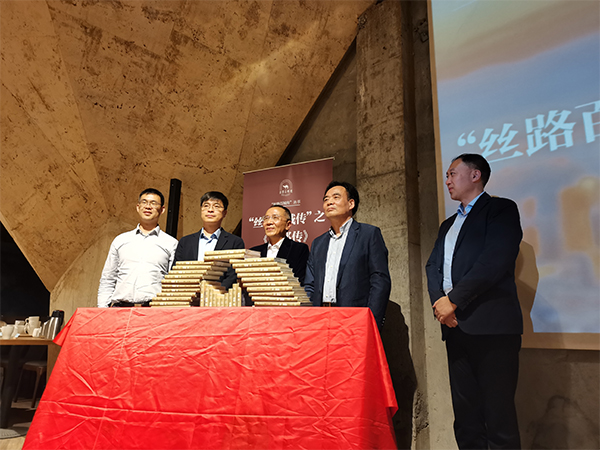 在發(fā)布式上,“絲路百城傳”新的標(biāo)識(shí)同時(shí)發(fā)布,該標(biāo)識(shí)將陸海絲路、駱駝和“絲路百城傳”篆書及英文生動(dòng)融為一體,包含該叢書融通古今中外、服務(wù)“一帶一路”的深刻蘊(yùn)意。