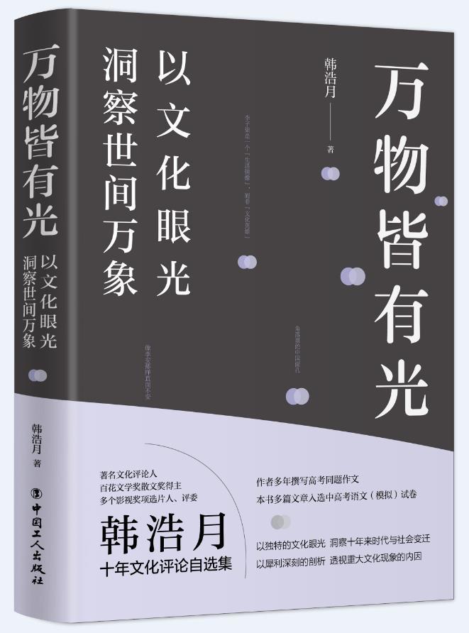 近日,文化評論人韓浩月新作《萬物皆有光》由中國工人出版社出版。韓浩月深耕于文化領域評論,對文化熱點、現(xiàn)象與人物的評論有自己獨到的視角與見解。本書是其近十年來發(fā)表于各大媒體的評論精選集。