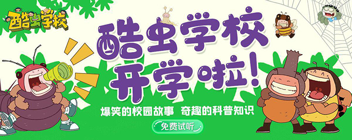 根據(jù)原創(chuàng)昆蟲科普知識爆笑校園漫畫改編的《酷蟲學(xué)??破沼新暪适隆罚员τ哪男@故事、新奇有趣的科普知識、廣播劇標(biāo)準(zhǔn)的精心制作等特點(diǎn),激發(fā)小讀者對大自然的熱愛,建立生態(tài)文明的宏觀觀念。