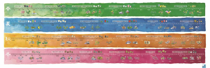 每一個(gè)節(jié)氣再劃分為三候……這三候分別以幾個(gè)字的形容,分成初中末三段對(duì)應(yīng)置入年歷中,文字中可感受到早年中國黃河流域的景物。