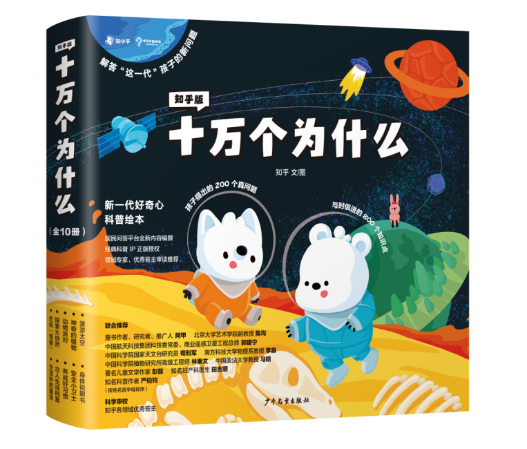 不是所有的科普讀物,都能叫《十萬(wàn)個(gè)為什么》。1961年至今,《十萬(wàn)個(gè)為什么》累計(jì)發(fā)行量近2億冊(cè),是至今仍未被超越的現(xiàn)象級(jí)科普?qǐng)D書(shū)。這套書(shū)在普及和傳播科學(xué)知識(shí)方面,發(fā)揮了非常積極的作用,影響了中國(guó)幾代青少年,堪稱是新中國(guó)影響力最大的青少年科學(xué)啟蒙讀物。作為國(guó)民級(jí)科普經(jīng)典,《十萬(wàn)個(gè)為什么》誕生至今已經(jīng)60多年。盡管已經(jīng)有了之前版本的《十萬(wàn)個(gè)為什么》,但是時(shí)代是不斷進(jìn)步的,特別是進(jìn)入數(shù)碼時(shí)代以后,孩子們比以往的所有時(shí)代,擁有著更多的信息和知識(shí),腦袋瓜里也萌發(fā)著更新的問(wèn)題和疑惑。他們發(fā)出的越來(lái)越多“超綱”問(wèn)題,是以前的課本、科普書(shū)上沒(méi)有的,也讓父母?jìng)兘?jīng)常面對(duì)“不知如何作答”的情況。新的“為什么”,需要新的解答。在少兒經(jīng)典科普《十萬(wàn)個(gè)為什么》出版60周年之際,知乎攜手上海少年兒童出版社,收集當(dāng)代孩子的真問(wèn)題,邀請(qǐng)各領(lǐng)域機(jī)構(gòu)和專家為孩子們寫(xiě)下新答案,推出了全新的知乎版《十萬(wàn)個(gè)為什么》,盡量讓孩子們的問(wèn)題都有答案。