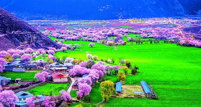 波密桃花谷桃花盛開 西藏林芝市波密桃花谷,面積約為155.04平方千米,平均海拔2740米。每年3月到4月中旬,這里的桃花陸續(xù)開放,人文景觀豐富的雪山下、村落間隨處都是桃花的蹤跡。作家江子在散文《去林芝看桃花》中寫道:“我看到一路上它大片大片地盛開。它向著我奔跑。好像是它終于認出我來,然后相邀更多的桃花來與我相認……”央青占堆(藏族)攝/光明圖片