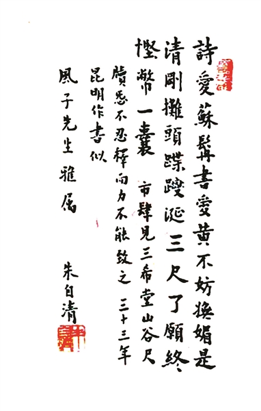朱自清詩作手跡