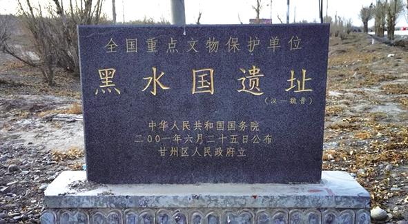 在于右任老先生寫詩后的自注,“甘州西黑水河岸古墳占地十余里,土人稱為‘黑水國’,掘者發(fā)現(xiàn)中原灶具甚多,遺骸脛骨皆長……”古黑水國遺址坐落在甘肅省張掖市甘州區(qū)西北17公里處,該遺址又稱黑水國城堡,俗稱黑水國,民間亦稱甘州老城,是“絲綢之路”上的著名驛站,距今有4000多年的歷史,是集漢唐古城、史前遺址、古寺院遺址、古屯莊、古墓葬為一體的龐大的甘州“歷史古籍”,也是集古代人文風(fēng)光、沙丘、湖泊、蘆蕩、濕地為一體的河西“特色畫冊”,在考古界有“河西走廊文物寶地”之稱,1908年由俄羅斯考古學(xué)家和探險家彼得·科茲洛夫發(fā)現(xiàn)并發(fā)掘,它的發(fā)現(xiàn)是當(dāng)時震驚中外的考古學(xué)大事件,2001年,古黑水國遺址被國務(wù)院公布為全國重點文物保護單位。
