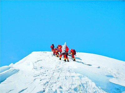 70多年來,世界各地的眾多登山者,紛紛向珠穆朗瑪峰發(fā)起挑戰(zhàn)。更好的攀登裝備,精準的天氣預報和更多的人參加攀登,成功登頂珠峰的登山者越來越多,登頂,從專業(yè)登山家的非常壯舉,發(fā)展到普通登山愛好者也能實現(xiàn)的愿景。盡管在技術層面上,登頂?shù)某晒β蚀蟠筇岣撸藬?shù)與日俱增。但是,到今天為止,攀登珠穆朗瑪峰,仍然是人類膜拜大自然最虔誠的神圣儀式,仍然是人類探索精神與冒險火花具有獨創(chuàng)性的體現(xiàn)方式。