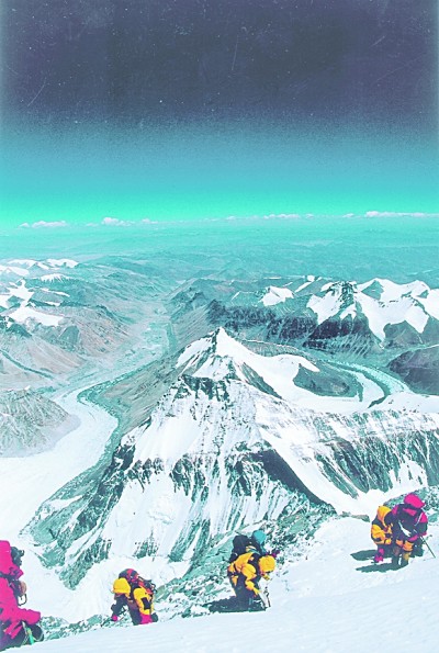 自1953年以來,人類以無與倫比的勇氣和日臻成熟的登山技巧,不斷地向珠穆朗瑪峰進發(fā)。年復一年的登頂,在喜馬拉雅山脈蒼茫的峰嶺,寫下厚重的英雄史詩。1953年5月29日,新西蘭人埃德蒙·希拉里和向?qū)Уぴ?middot;諾爾蓋,從珠穆朗瑪峰南坡登頂,戴上人類歷史上第一次登頂珠峰的桂冠。1960年5月25日4點20分,中國登山隊隊員王富洲、屈銀華、貢布(藏族)經(jīng)過艱苦卓絕的攀登,終于首次從北坡登上地球最高的山峰珠穆朗瑪峰頂峰。中國人創(chuàng)造了世界登山史的新紀錄。經(jīng)過多年堅忍不拔的努力,登頂珠穆朗瑪峰從夢想變成現(xiàn)實。從1953年至1999年,1169人次登頂珠峰。從2000年到2015年,5832人次登頂珠峰。到2015年,世界上已有7001人次登頂珠峰。