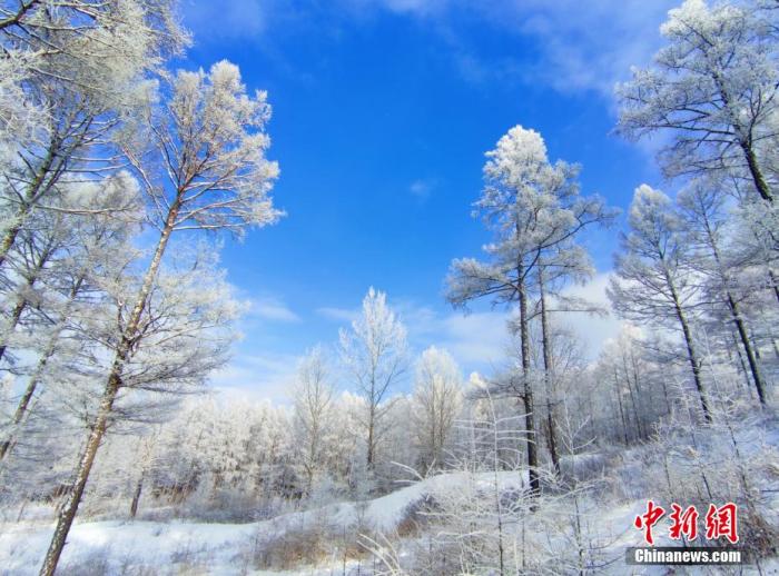 資料圖:根河市出現(xiàn)的大范圍霧凇將群山裝扮成了銀裝素裹的童話(huà)世界。 劉麗平 攝