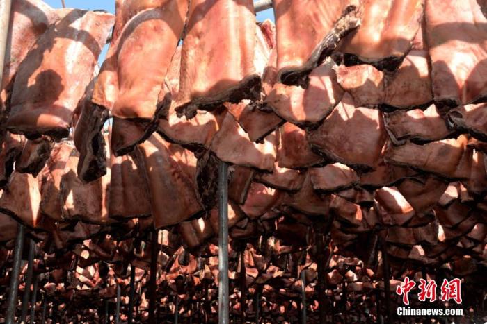 資料圖:隴西臘肉瘦肉燦艷似紅霞,瘦而不柴;肥肉晶瑩若瑪瑙,肥而不膩,微帶透明。 張愛(ài)平 攝