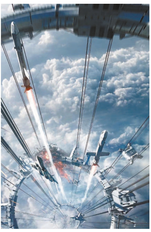 在科技層面,片中戰(zhàn)斗機(jī)、無人機(jī)空中大戰(zhàn)場(chǎng)面宏大驚險(xiǎn),MOSS人工智能的理性冷峻令人生畏,太空天梯的長(zhǎng)鏡頭展示更是看得人起雞皮疙瘩;在幻想層面,這一部炸月亮、移地球,無一不是大手筆,用計(jì)算機(jī)延續(xù)人類生命的設(shè)定則直接追問生命本質(zhì),具有一定的哲學(xué)思辨。
