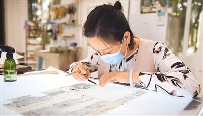 安徽博物院文物科技保護(hù)中心紙質(zhì)文物修復(fù)室的工作人員對(duì)古籍文物進(jìn)行修復(fù)。新華社記者 周 牧攝
