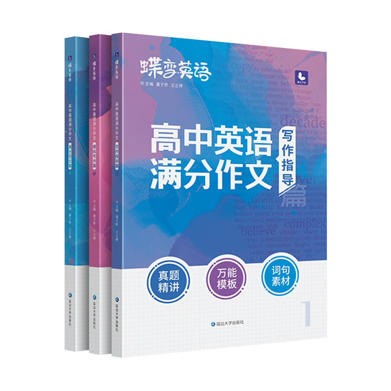 《蝶變英語作文套裝》共3本:分別是寫作指導(dǎo),模擬寫作和滿分作文。其指導(dǎo)內(nèi)容細分為提綱作文,圖表作文,圖畫作文,開放作文,常用表達。寫作指導(dǎo)部分對書信,通知,發(fā)言稿,混合型應(yīng)用文,都有詳細的指導(dǎo)內(nèi)容。