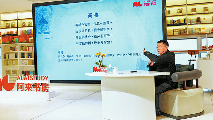 “柟樹(shù)色冥冥,江邊一蓋青。近根開(kāi)藥欄,接葉制茅亭。”最先賞析的是《高柟》,這首詩(shī)很寫(xiě)實(shí),并沒(méi)有驚人之語(yǔ),但阿來(lái)特別將其放在首位,“從這首詩(shī)里看到可貴的自然主義精神,這在今天依然能給文學(xué)寫(xiě)作者啟發(fā)。”