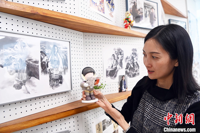 圖為2月20日,陳天竺向中新社記者介紹讀者出版集團(tuán)推出的“太空閱讀者”手辦。 中新社記者 九美旦增 攝