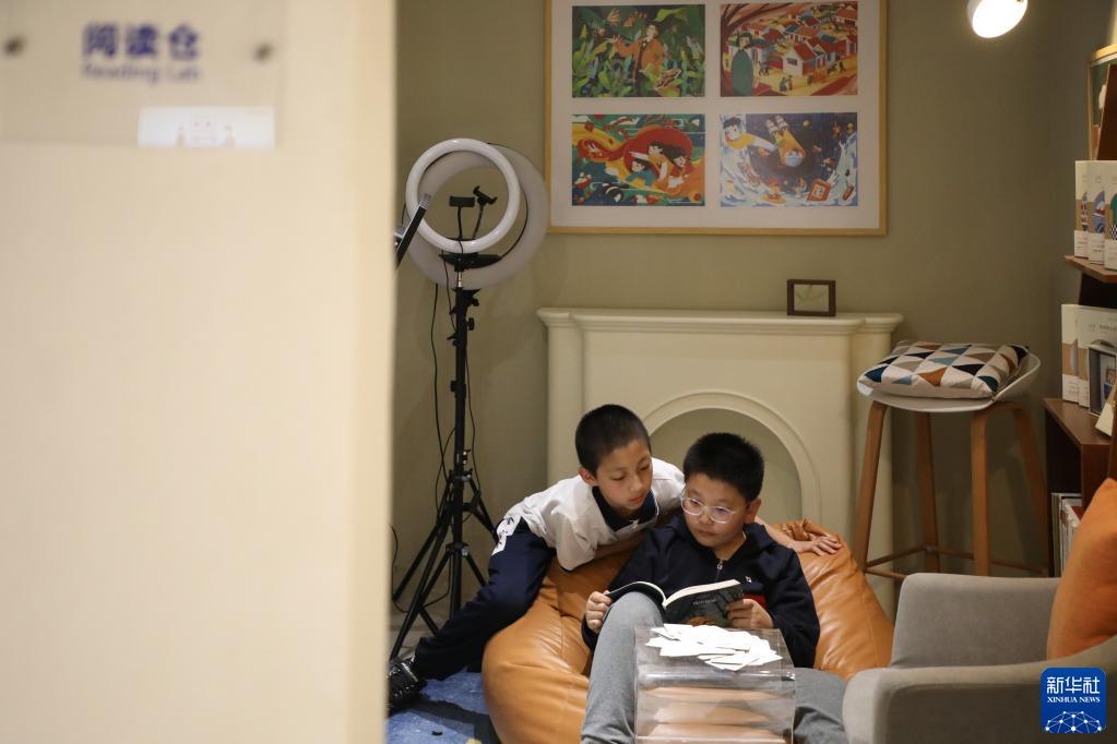 4月1日,在甘肅省蘭州市的讀者出版集團(tuán)數(shù)字閱讀中心讀者小站,小朋友在多功能閱讀倉(cāng)讀書(shū)。新華社記者 馬希平 攝