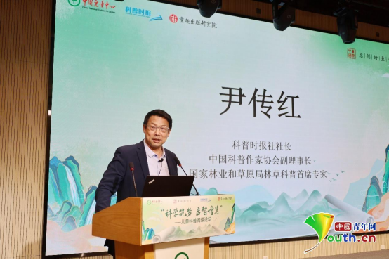 科普時(shí)報(bào)社社長、中國科普作家協(xié)會(huì)副理事長、國家林業(yè)和草原局林草科普首席專家尹傳紅發(fā)表題為“激發(fā)想象力和探求欲的科普閱讀”的主題演講。尹傳紅認(rèn)為科普閱讀可以與孩子的智力發(fā)育同步進(jìn)行,科學(xué)可能是最能彰顯問題、發(fā)現(xiàn)問題、解決問題的重要領(lǐng)域,科普閱讀能幫助孩子增長知識(shí)、增加智慧、增進(jìn)思想。
