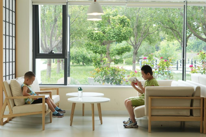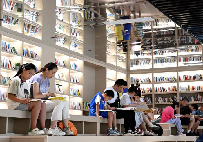 8月9日,小朋友在河北省石家莊市鹿泉區(qū)龍泉湖公園內(nèi)一處公園書(shū)房閱讀。