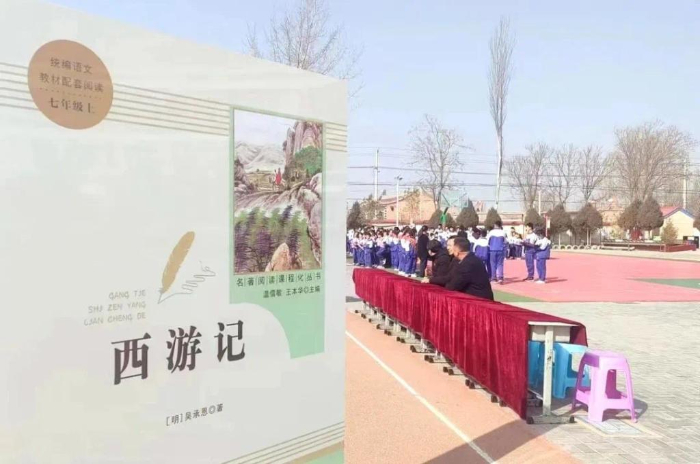 寧夏靈武市狼皮子梁學(xué)校舉辦以閱讀為主題的開學(xué)典禮。受訪者供圖