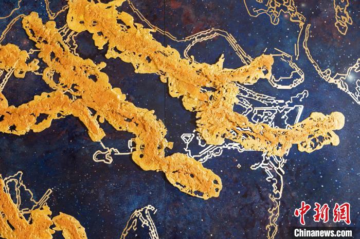 記者了解到,這幅熔銅壁畫采用國家級非遺銅雕技藝,結(jié)合熔銅藝術(shù)、釉彩著色等創(chuàng)新技藝制作而成,從設(shè)計、制作、誕生,全程歷時一年,難度很大。壁畫以朱炳仁手繪的星空“云水墨”制作,用大面積深藍宇宙為底,采用熔銅藝術(shù)構(gòu)成繁星點點。
