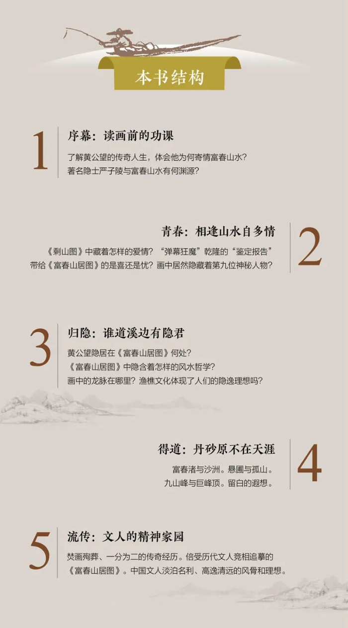 黃公望在《寫山水訣》中曰 :“或于好景處見樹有怪異,便當(dāng)模寫記之……”這位神秘人物正好呼應(yīng)了這段敘述。如果我們的推論成立的話,這第九位人物或許就是中國古代繪畫里隱藏得最深的畫家自畫像了。(節(jié)選自《富春山居圖:畫中之蘭亭》第二章“青春:相逢山水自多情”)