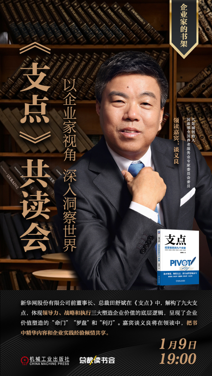 為了企業(yè)家更好地塑造企業(yè)價值,提升格局和眼界,1月9日19:00九如城創(chuàng)始人談義良將領(lǐng)讀《支點》一書,將在“認(rèn)識管理”視頻號上進行直播。通過如何從多維度視角塑造企業(yè)價值、如何提升企業(yè)家的格局和眼界、如何做好團隊塑造,構(gòu)筑人力資本基石三個方面,從企業(yè)家視角把書中精華內(nèi)容和企業(yè)實踐經(jīng)驗傾情共享,千萬別錯過。