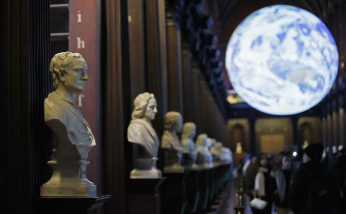 人們?cè)趷?ài)爾蘭都柏林大學(xué)圣三一學(xué)院老圖書(shū)館內(nèi)參觀(1月16日攝)。