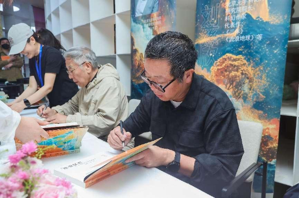 年會上還舉辦了“科幻中的故土情懷”圓桌論壇,由程婧波擔任主持人,董仁威、江波、甘偉康、石以、超俠、顧適、劉玉杰參加對話交流。當晚在首鋼園•全民暢讀藝術書店舉行新書簽售活動,王晉康、劉慈欣、董仁威、超俠、寶樹、江波、程婧波、顧適等本書8位作者代表全書56位中國科幻重磅作家簽售,現(xiàn)場讀者數(shù)百人參加,快手新知平臺50余萬人在線圍觀,刷新了科幻圖書出版簽售少有的火爆場面。