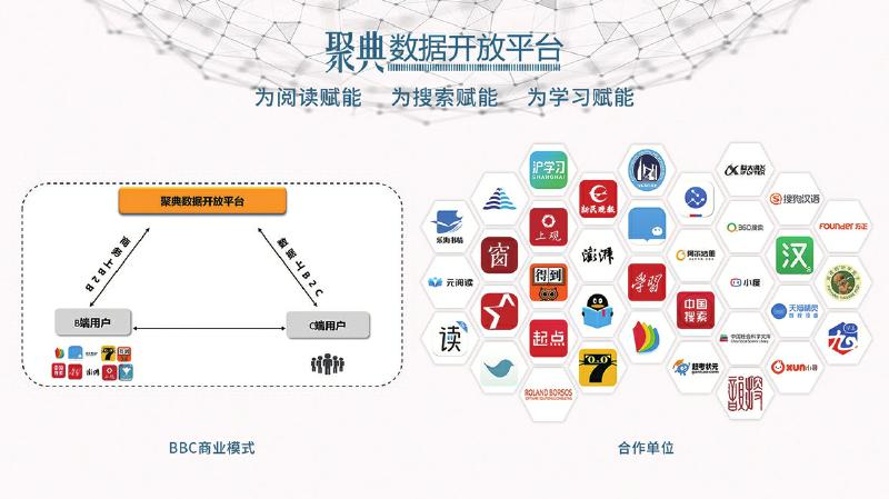 以我為主,推動(dòng)產(chǎn)業(yè)鏈和生態(tài)圈的協(xié)同共進(jìn)。與以往數(shù)字出版平臺(tái)大都采用B2B、B2C等商業(yè)模式不同,聚典平臺(tái)采取的是BBC運(yùn)營模式,即在商務(wù)流上是B2B模式,而在數(shù)據(jù)流上是B2C模式。該模式很好地解決了用戶在數(shù)字閱讀過程中的痛點(diǎn),同時(shí)又很好地平衡了各方利益,C端用戶無需付費(fèi)便可享受聚典平臺(tái)的優(yōu)質(zhì)內(nèi)容資源服務(wù),B端客戶向平臺(tái)付費(fèi)以獲得增值服務(wù),在增加其產(chǎn)品用戶黏性的同時(shí),也減輕了自身的數(shù)據(jù)加工和技術(shù)開發(fā)工作。聚典平臺(tái)不僅在總體上創(chuàng)造出增量價(jià)值,更通過制度的設(shè)計(jì)很好地平衡了增量價(jià)值的合理分配,讓各方都分享到其中的一部分,從而調(diào)動(dòng)了各方的參與性和積極性。