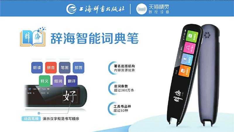 為了更好地適應(yīng)用戶在紙質(zhì)閱讀過程中的快速查檢需求,辭書社經(jīng)過數(shù)年設(shè)計(jì)研發(fā),于2022年9月推出辭海智能詞典筆。詞典筆充分依托聚典平臺(tái)積累的海量內(nèi)容資源,將1.6億字裝進(jìn)一支詞典筆,內(nèi)置詞條達(dá)到了300余萬條,收錄了《辭?!罚ǖ谄甙妫┖汀洞筠o海》《漢語大詞典》《英漢大詞典》《世紀(jì)漢英大詞典》等國家級(jí)標(biāo)志性工具書,整合《現(xiàn)代漢語大詞典》《現(xiàn)代漢語規(guī)范詞典》《中國成語大辭典》《同義詞、反義詞大詞典》等精品工具書,讓用戶每次都能夠查有所得。同時(shí),詞典筆實(shí)現(xiàn)掃讀結(jié)果1秒呈現(xiàn),并融合數(shù)字智能技術(shù),集掃描查詢、語音助手、聽力練習(xí)、語音翻譯、口語測評(píng)、數(shù)碼錄音、生詞本、文本摘抄等八大功能于一體,實(shí)現(xiàn)一筆多用。