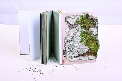 值得一提的是,上述書籍中有許多僅容納了少量文字信息,甚至完全脫離了文本的限制,藝術(shù)家僅借“書”的形式與面貌來傳遞自己的所思所感。這類作品既是書籍,也可看作獨(dú)立的藝術(shù)裝置,呈現(xiàn)出書籍裝幀與其他藝術(shù)門類相互融合的發(fā)展趨勢。