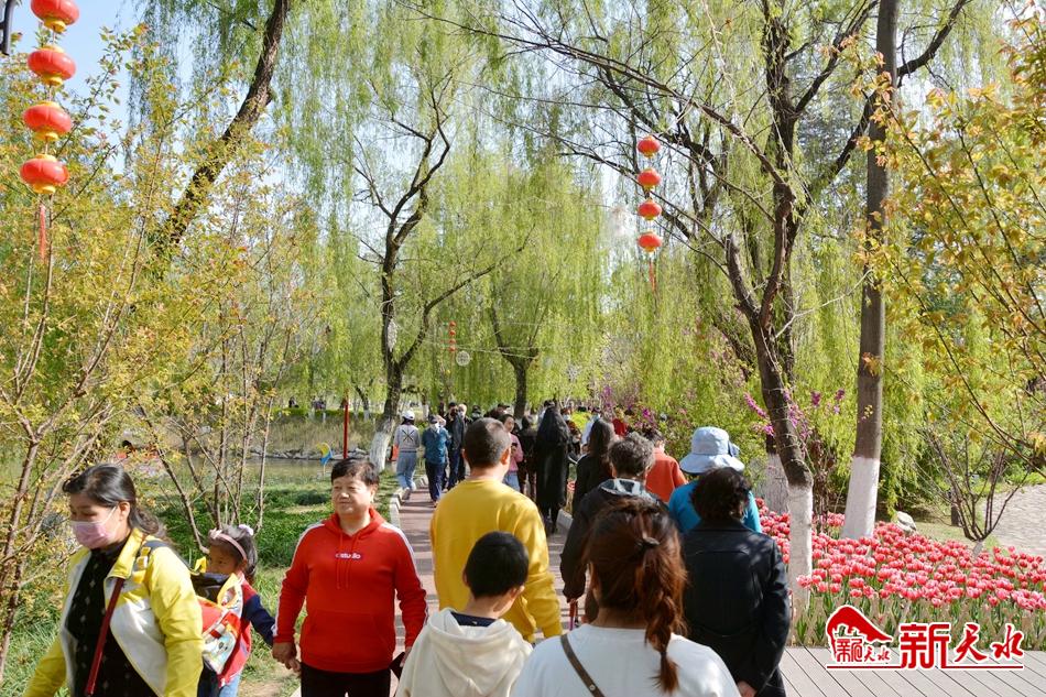 在經(jīng)歷了一個(gè)漫長的嚴(yán)冬之后,馬跑泉公園的25萬余株郁金香和5萬余盆各類時(shí)令鮮花在麥積大地上郁郁蔥蔥的綻放著。