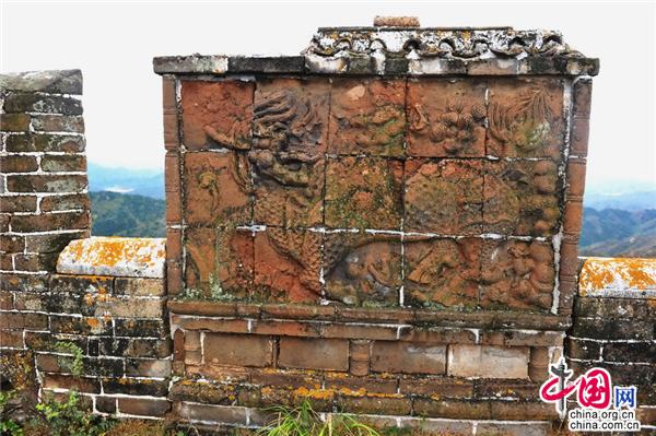 而且在麒麟的周邊,還搭配了許多小圖案做點綴,比如小鹿、小鳥,甚至還有靈芝。很多文物專家說,麒麟影壁墻是萬里長城上極為罕見的遺跡。麒麟在我國古代是傳統(tǒng)的祥云瑞獸,在明代更是一個等級非常高的瑞獸。不少長城專家表示,麒麟影壁出現(xiàn)在金山嶺長城上,也充分表現(xiàn)了戍守長城的官兵祈盼和平、吉祥,憧憬幸福生活的美好愿望。