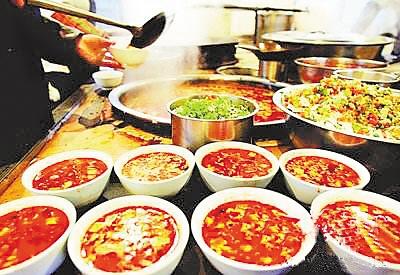 “涎水面”的吃法很別致,上飯時,碗里的湯要寬,面條只撈一筷子。同時上四碟“下飯菜”,以時令菜為主,如涼拌黃瓜、水蘿卜,或胡蘿卜絲、腌菜等,其中必有一盤肉,或豬頭肉、肘片之類。講究上四盤,取“四喜”吉祥之意,切忌上三盤,民間認為上三盤是獻鬼呢,叫“三獻毛鬼神”。蓮花地方有釀制香醋的傳統(tǒng),遠近聞名,濃釅酸香,醇美增味。主人一碗碗端上“涎水面”,碗中紅油浮動,香氣誘人,面條筋道彈齒,爽滑解頤,客人們在碗里調(diào)入油潑辣子與香醋,吃得熱汗淋漓,紅光上臉,真是“尤珍北山面,一吸尺余長。”一筷子面兩口吃完,便放下碗,不喝湯,再將端上來的面撈進自己用的碗中繼續(xù)吃。飯桌上放了許多碗,客人也可以重新端一碗新上的面吃,前邊吃過的一碗湯碗主人就會端下去。但要注意,如果你沒吃好,還要繼續(xù)吃,碗中的湯決不能喝掉,假如你喝了碗中的湯,主人便會認為你吃好了,不再給你上面了。所謂“涎水面”,就是因為一直用一只碗中的湯頭泡面,故名之。