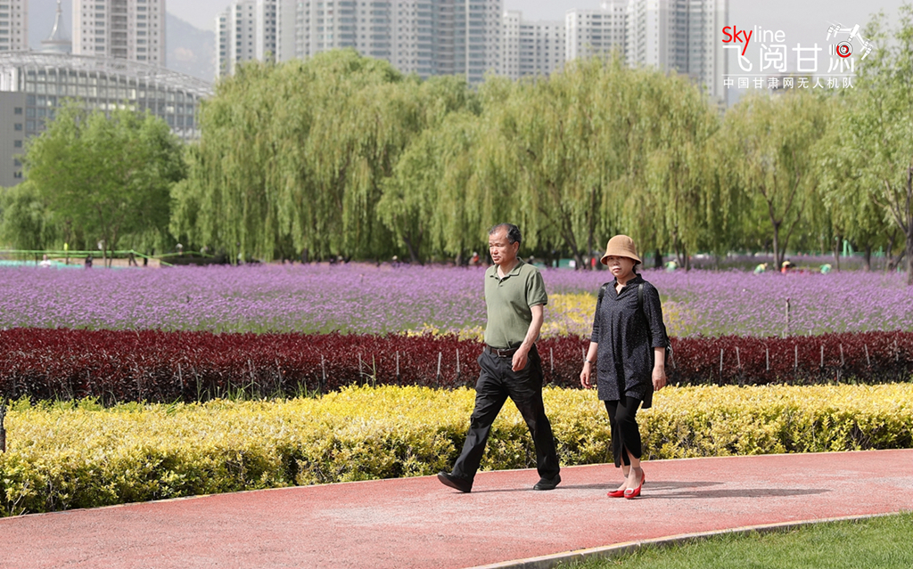 進入六月,蘭州馬拉松公園種植的大片馬鞭草已進入花期,還有醉蝶花、金雞菊、金娃娃萱草等花卉點綴出豐富的色帶,讓大河之城更具詩情畫意。下面請跟著中國甘肅網《飛閱甘肅》的鏡頭從空中俯瞰夏日的花海,然后再來個鮮花特寫,感受市民徜徉其中的那份愜意。