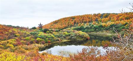 這里一年四季皆有值得欣賞的美景,可謂一時一景。春夏時節(jié),桃木山一帶草木蔥蘢,峰嶺翠嶂,前、后兩湫在一望蔚然的萬千丘壑中辟出兩點平闊明凈的幽境,像不惹凡塵的仙女隱在人跡不到處,任群山映襯著清靈俊秀的模樣,吐納著關山深處的空靈氣息。其前湫水深波靜,不能見底,水草飄搖,游魚雜出,水面倒映著四岸草木和亭臺曲欄,岸邊偶有漁人垂釣或游客輕歌,一派清幽韻致。后湫水淺色深,人工砌成的蓮花臺處于密藻之中,水邊泉眼密布,形成陰濕滲水帶,西側(cè)與北坡各有一座寺院,白墻金頂隱在一片蔥蘢之中,點綴成趣。每到初夏,后湫北坡般若寺周圍遍開一種白色野花,因必為兩朵連枝并開,人們稱其姊妹花。此時遠望近觀,可見花濃成勢,純潔芬芳,自成一景。若在清晨或雨后,云霧彌漫山間,湫池的青白水面在渺渺煙雨中依稀顯隱,變幻不定,斯山斯水頓如仙界。