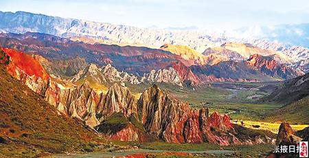 木星谷位于肅南縣大河鄉(xiāng)紅灣村境內(nèi),占地面積十多平方公里,地勢開闊遼遠,地貌景觀豐富多彩,既有以色取勝的五彩迎賓山,又有以型取勝的神奇萬佛山、七彩飄帶峽、萬卷天書峽、巨型轉(zhuǎn)經(jīng)輪等絕世奇觀,是真正意義上的地貌大觀園。上述景觀稀缺孤傲,磅礴大氣,以特有的稟賦傲立于世,帶給人強烈的震撼。