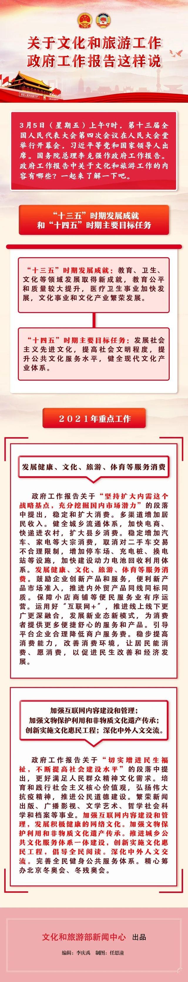 原標(biāo)題:兩會(huì):《政府工作報(bào)告》這樣說文化和旅游工作