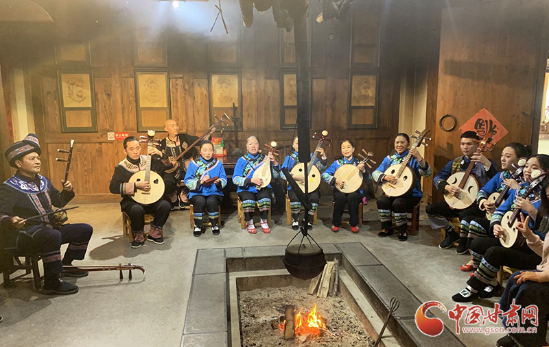 民間藝人在恩施土家女兒城景區(qū)內演唱土家小曲
