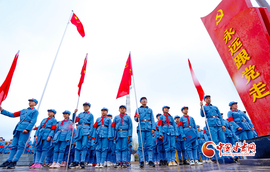 3月31日,甘肅張掖甘州區(qū)龍渠鄉(xiāng)中心學(xué)校的300多名師生宣誓永遠跟黨走。