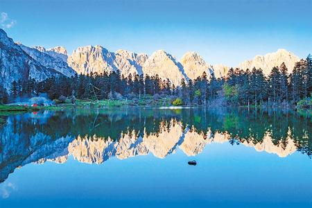湖邊骨麻山巍峨聳立,湖水清澈澄碧,周圍森林茂密,草甸如茵。夏季漫山遍野的高山杜鵑競(jìng)相怒放,形成高山、湖泊、森林、花海交織的美麗畫卷。