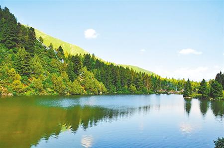 達(dá)爾宗湖位于甘南州夏河縣王格爾塘鄉(xiāng)達(dá)宗村西南處,在群山環(huán)抱中閃爍出一汪亮晶晶的水面,碧波蕩漾。人們形容達(dá)爾宗湖像一顆鑲嵌在密林幽谷里的明珠,在高山峽谷放射著耀眼的光芒。