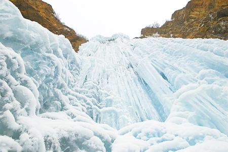 往日飛流直下的山泉瀑布,在冬日里幻化成一排排幾十米寬的銀瀑,從崖壁上垂瀉而下。山谷下,石壁間,清一色的玉白,宛如一座巨大的冰簾,順著崖壁的走勢,或凸出或凹進(jìn),層層疊疊將整個峽谷環(huán)抱起來。冰瀑、冰簾、冰柱、冰舌,有的相銜相連,有的各自為政,交替排列。如雕似塑,似瑪瑙,像琉璃,晶瑩透亮。冰下暗流涌動,嘩嘩的水聲,由高到低在冰下輕響。一時間,仿佛置身于潔白無瑕的童話世界。朋友不住地贊嘆:“這才是真正的冰清玉潔!”