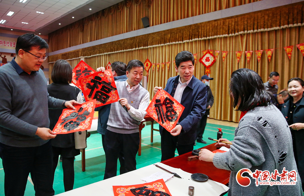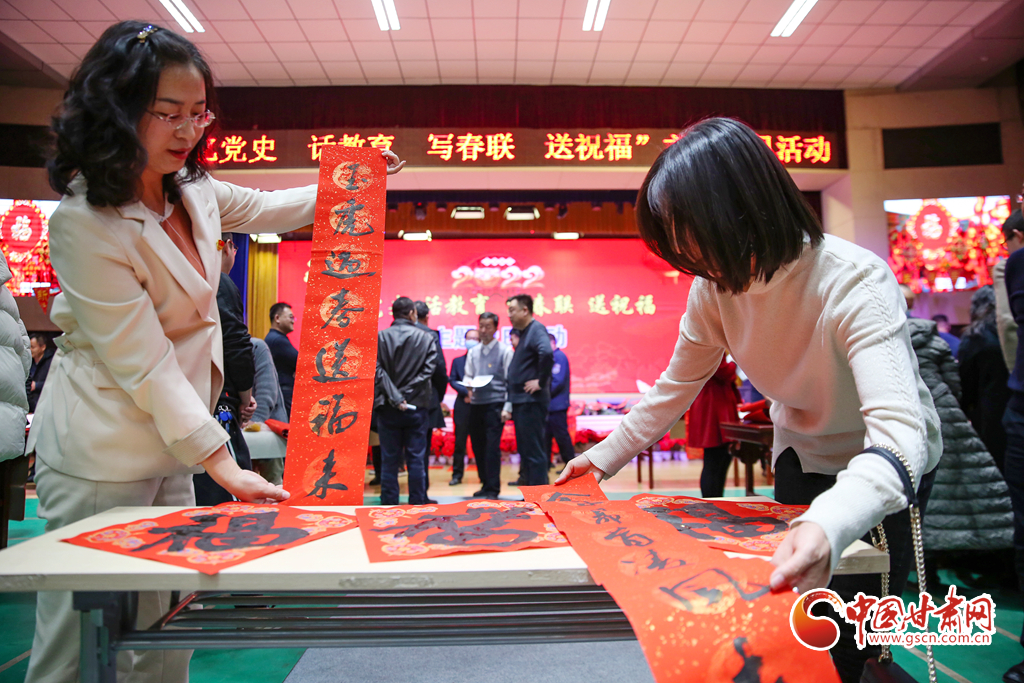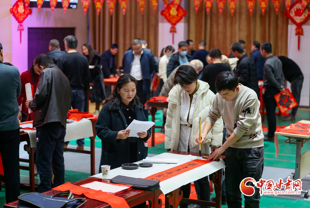 1月25日晚,甘肅省酒泉市教育局機(jī)關(guān)黨支部舉辦了寫(xiě)春聯(lián),迎新春活動(dòng)?;顒?dòng)現(xiàn)場(chǎng),來(lái)自市區(qū)兩級(jí)書(shū)協(xié)、美協(xié)及教育系統(tǒng)的書(shū)法家們筆走龍蛇,潑墨揮毫,行、隸、草等多種書(shū)體各顯神韻,一幅幅充滿喜慶、祝福的對(duì)聯(lián)在書(shū)法家的手中隨筆而出,為迎接新春佳節(jié),弘揚(yáng)傳統(tǒng)文化,營(yíng)造歡樂(lè)、祥和的節(jié)日氛圍。