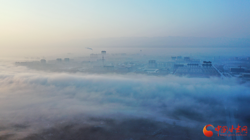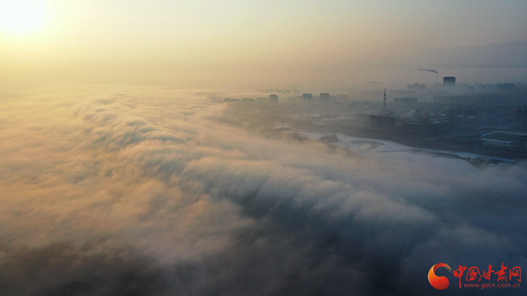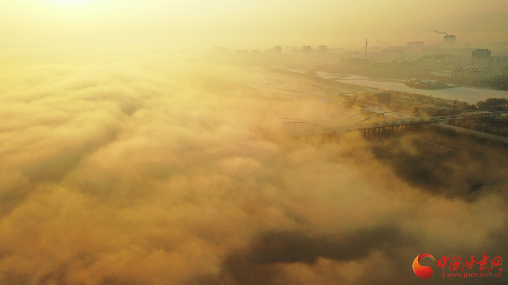 2月8日清晨,甘肅張掖市高臺(tái)縣黑河國(guó)家城市濕地公園上空霧浪翻滾,虛無(wú)縹緲,恍如天宮仙境,呈現(xiàn)出海市蜃樓般的云海奇觀,在陽(yáng)光的照射下,格外美麗。由于多年來(lái)黑河生態(tài)治理,冬天封凍,加之近日大范圍的降雪低溫天氣,黑河的水面上經(jīng)常霧氣蒸騰,兩岸的樹木玉樹瓊花,形成霧凇景觀,如同童話世界里的仙境一般圣潔,令人心曠神怡。