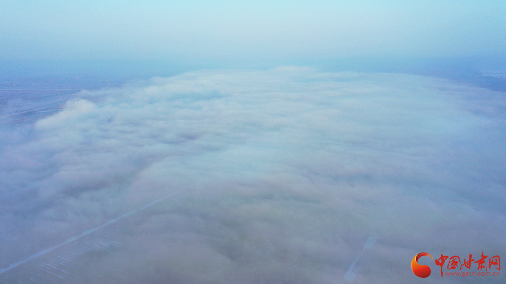 張掖市高臺(tái)縣黑河國(guó)家城市濕地公園上空的云海景觀。