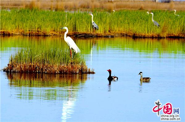 很多鳥類對生存區(qū)域極為挑剔,環(huán)境稍不如意,便會另覓佳處。這里水質(zhì)清冽,空氣純凈,湖草肥美,魚食豐盛,正是很多鳥類遠(yuǎn)途中的理想家園或行途驛站。據(jù)悉,全球九條候鳥遷徙路線中有三條路過中國,其中有兩條遷徙路線在寧夏重疊,沙湖以其良好的自然生態(tài)環(huán)境,為眾多候鳥過境寧夏時(shí)提供了重要棲息繁衍地。