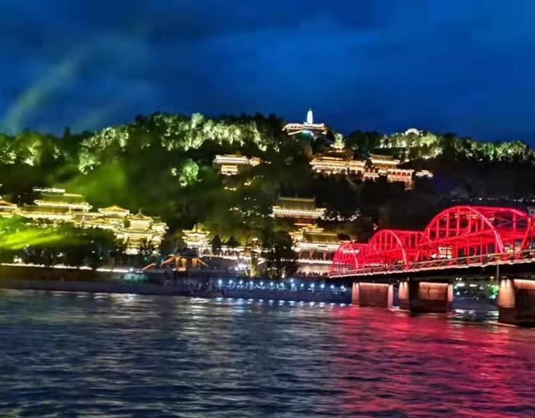 在這條美麗的河畔邊,政府打造的新型地標(biāo)建筑更為這條母親河添上華麗的一筆。夜晚,在美麗的黃河之濱,黃河樓作為蘭州市新地標(biāo),在節(jié)日期間展開震撼人心的幻影燈光秀,不僅有伴隨著音樂鼓點不斷變化的彩燈交織環(huán)節(jié),更有一場富有歷史文化色彩的燈光與水霧交融的真人演繹表演。從蘭州歷史文化淵源追溯,至現(xiàn)代智慧蘭州,文明蘭州,黃河樓以燈光和音樂及特效的多方位演繹形式,為在場的市民及游客打開一番與眾不同的視覺盛宴。一位來自嘉峪關(guān)的游客告訴記者:“美麗的燈光秀給我心靈上帶來了震撼,它不僅僅是視覺上的刺激,更帶有蘭州這座古城更深層的文化底蘊,讓我們了解到黃河文化,絲路文化,了解到金城蘭州的歷史故事,更對現(xiàn)代蘭州、智慧蘭州和文明蘭州產(chǎn)生深刻的了解和憧憬。”